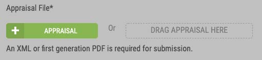 Click the green + Appraisal button to select the file from your computer, or drag and drop it into the corresponding Drag Appraisal Here section.