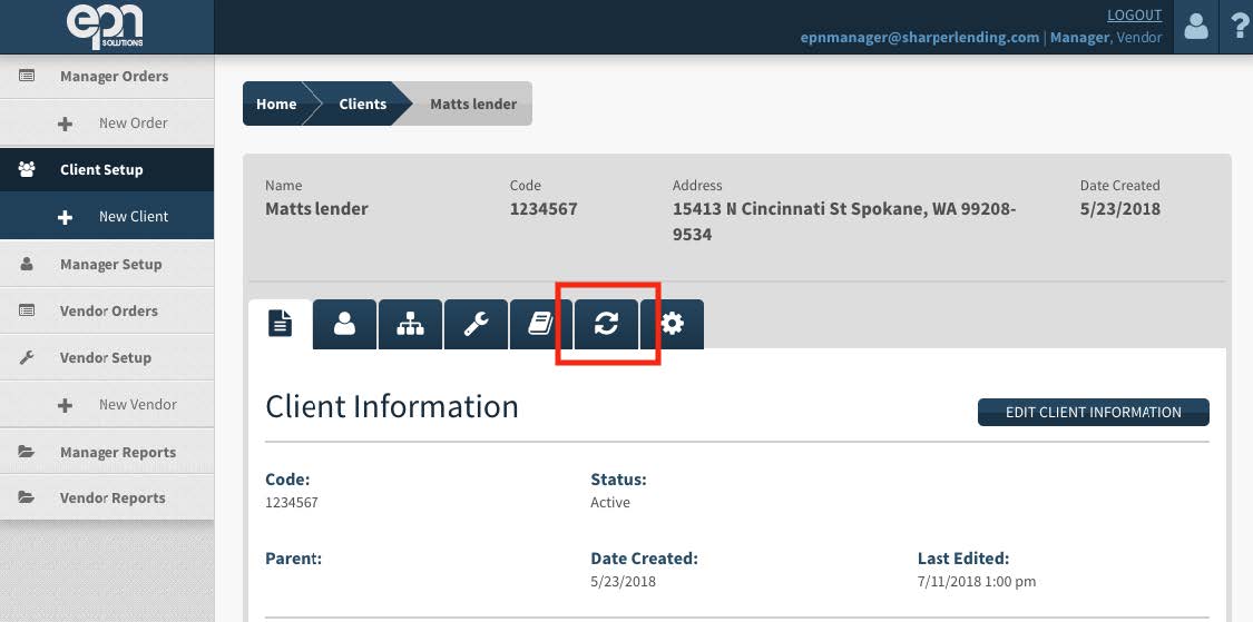 1. From the menu at left, click Client Setup, then find and click on the client/lender that you want to enable for custom workflows. Once the Client Information tab opens, move to the Workflows tab.