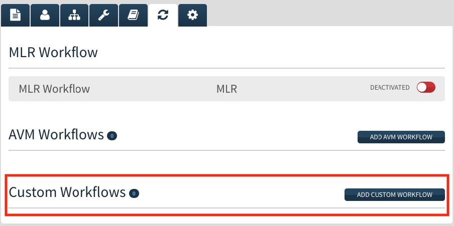 2. On the Workflows tab, locate the Custom Workflows section, and click the Add Custom Workflow button.
