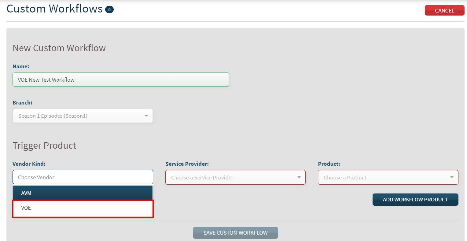 d. Service Provider: select the AVM or VOE vendor that should trigger the workflow.