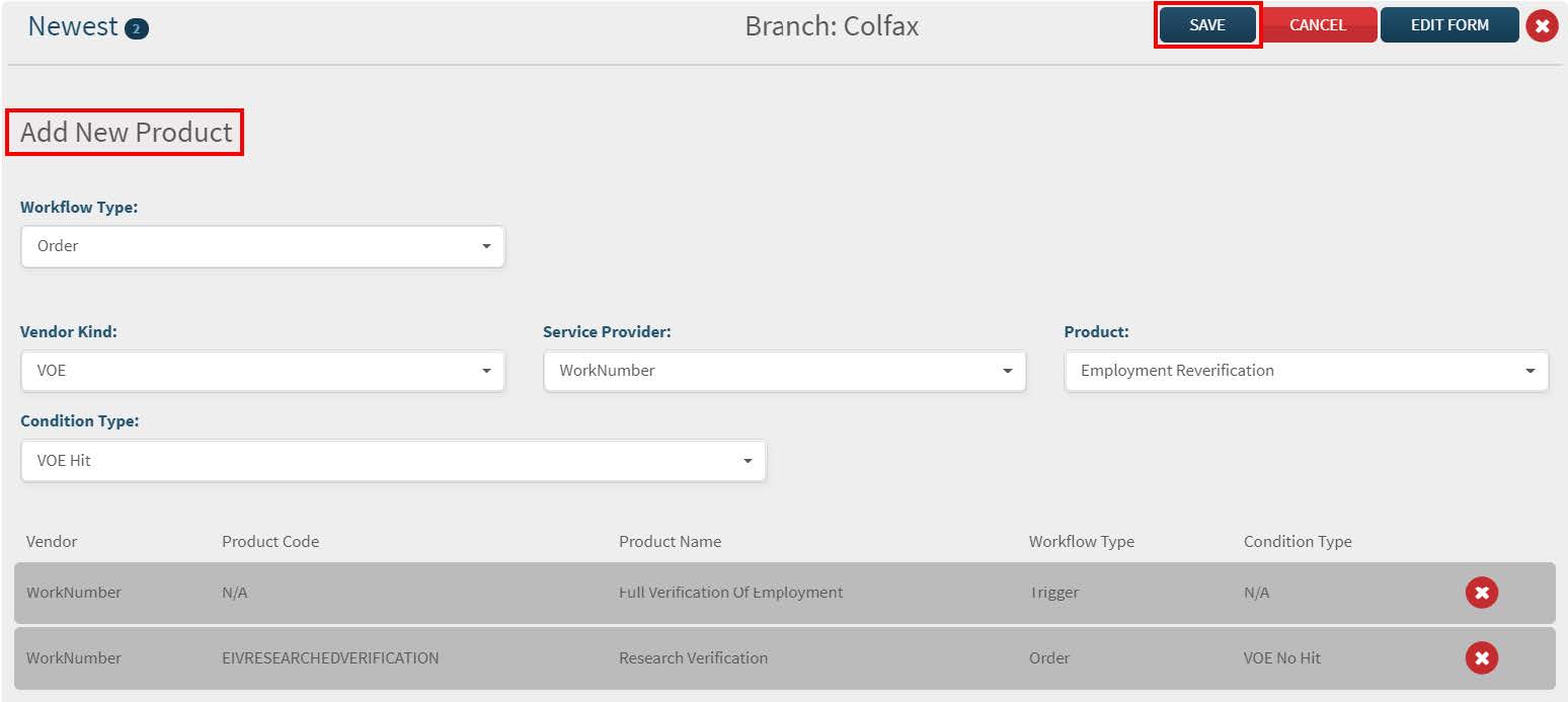 7. You can add more to this workflow by clicking the Add Workflow Product again to set up this workflow order a 4506-T in both HIT and NO HIT scenarios.