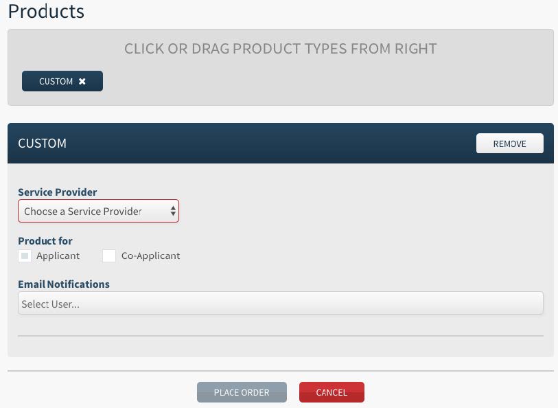 Custom workflows are setup on the client company, at the lender’s branch level, so individual branches can have different workflows according to how they process loans. Branches can have as many custom workflows setup as they want: they can select which workflow they want to order from the main ordering screen.