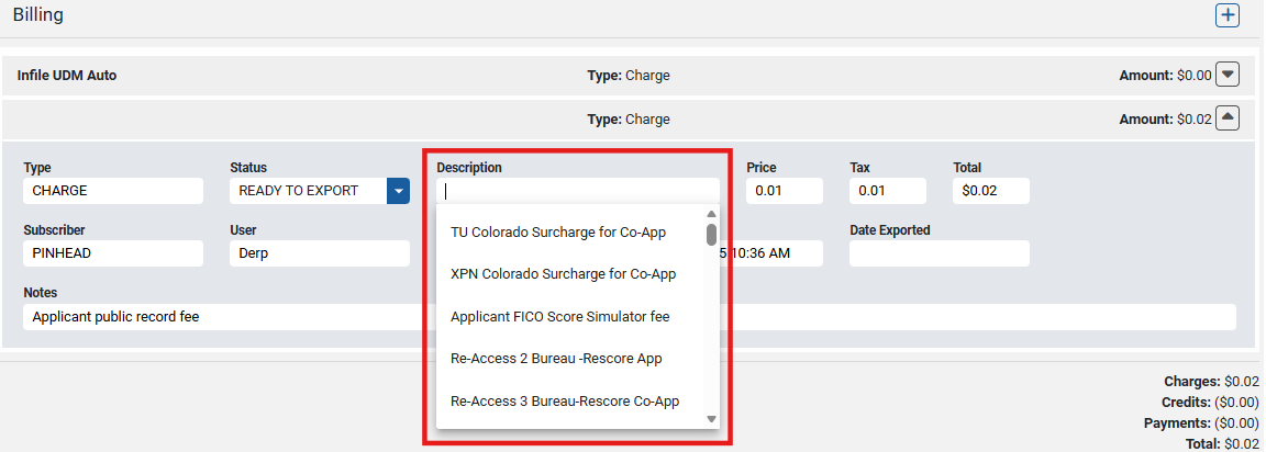If the Description needs to be updated, users can delete the current billing description. The user will be presented with all existing Billing Descriptions in a dropdown list.