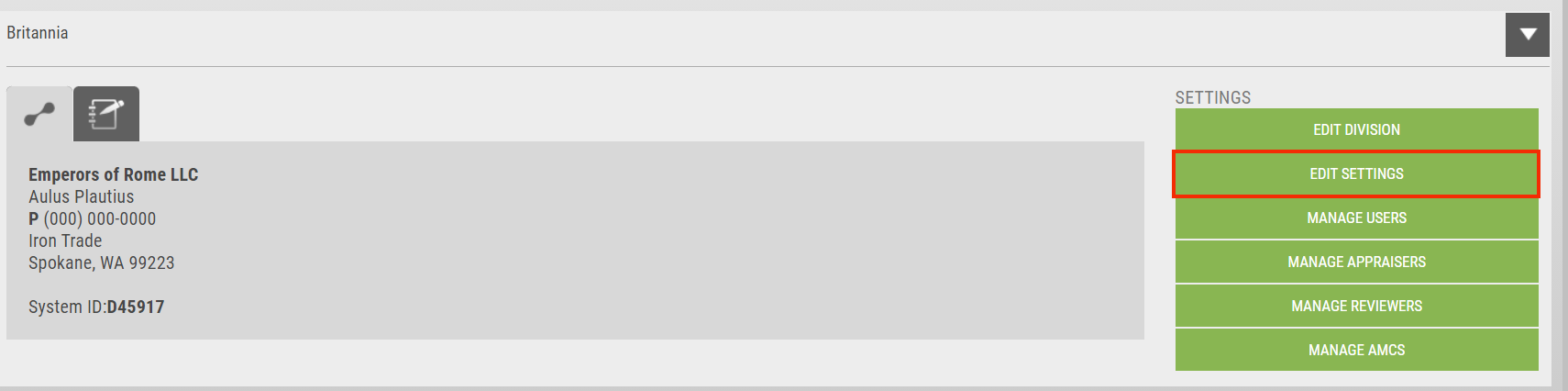 3. On the Edit Settings tab, click the Billing/Services entry, and find the Manual Appraisal Review section.