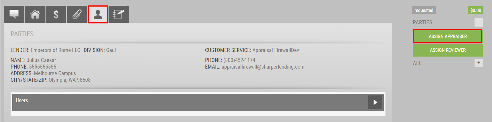 Choosing Manually Assign will allow you to select an individual appraiser, eligible for assignment from your panel. The Assign Appraiser button will be immediately available, so you can assign the order without further delay. Selecting Auto-Assign will trigger the order to rotate through your panel of appraisers, beginning with the next appraiser up in the rotation. If Close is selected, the user will be taken back to the Parties tab.