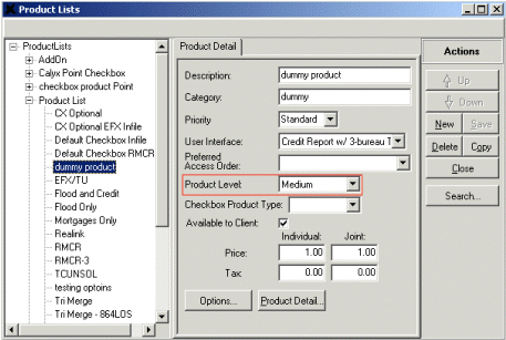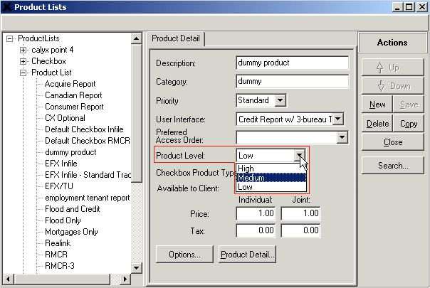 - For example, if a particular user only orders Infile-type of reports, you could set the Product Level on the Infile-type of products to Low or Medium, and then set the Product Level Range Minimum to Low and the Product Level Range Maximum to Medium for that user. Then, on all RMCR-type of products, you could set the Product Level to High. The next time this user logs in to order a new report, the products that are available would only be those products that are set as Low or Medium – all of the RMCR-type of products that are set as High would then be suppressed from the product list.