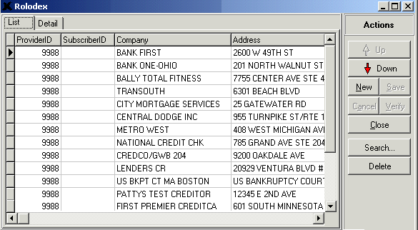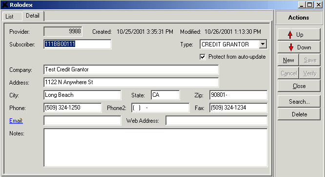 A rolodex of grantors, collectors, employers, and landlords is important to have when trade lines (including collection accounts), employment accounts, and/or addresses are imported from the bureaus without complete Subscriber information. In this case, your rolodex comes in handy—it allows you to add the Subscriber information to the account if the Subscriber information is included in your rolodex.