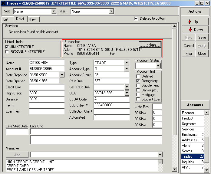 Most commonly, users will see that only the Subscriber number will import—in this case, you can match the imported Subscriber number with the complete Subscriber entry in your rolodex. Once a match is made, the rest of the Subscriber information can be added to the trade line for concise and correct reporting.