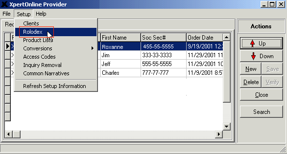 The rolodex is another term for all of the stored information for Subscribers (credit grantors, landlords, employers, and collectors) available to be reported on a trade line. Rolodex information is individual per Provider in the XOP utility program—since most of you using the XOP software migrated over from XpertOnline.net you probably have a rolodex setup and available to you.