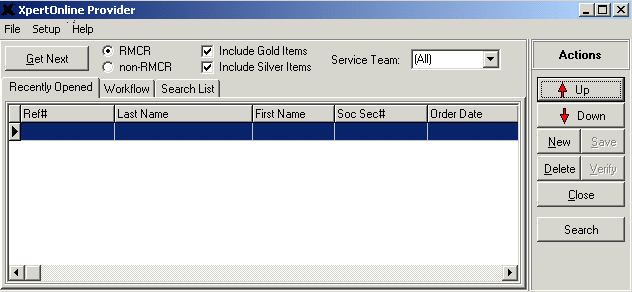 The first tab is called the Recently Opened tab. It keeps track of all requests that you have opened. When you close out of the XpertOnline Provider program in its entirety, then re-open it, the program remembers those requests that you have opened recently and displays them in this tab.