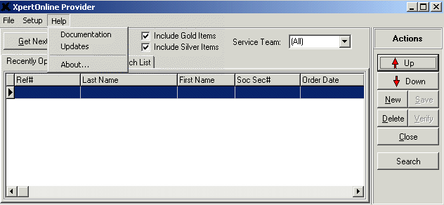 The Help | Documentation menu option opens a screen that allows users to download and view all user documentation that has been written for this program. Users can also view accesses, services, and outputs definitions. As you know, the accesses, services, and outputs are the items that make up a product. This page also provides a direct login link to XpertOnline.net, and a direct link to the What’s New page in XpertOnline.net.