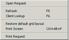 - Print Request will print the selected request to the default printer.