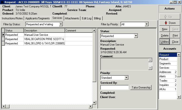- Client Lookup opens an information screen that contains the client that ordered the request.