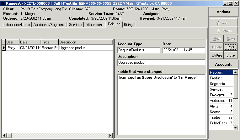 - The Change Client option allows you to change the name of the client that ordered the request. WARNING: this can violate the Fair Credit Reporting Act. Be very cautious when using this feature.