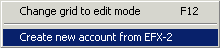 - Change Grid to Edit Mode—when a user selects on the above option (Change to Row-Select Mode), the right click options change to display a Change Grid to Edit Mode option. This option is the default mode of the account list grid—when in the edit mode, users can tab from field to field within an account row and not from row to row.