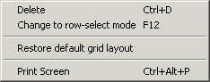 - Change Grid to Row-Select Mode—this option allows the user to select an entire account row listed in the account list grid instead of a particular field within an account row. Always use this option when deleting multiple accounts at once—hold down the CONTROL key and arrow up or down to select multiple accounts.