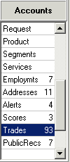 - Derogatory—this limits the Trades List to only those items that have the Derogatory Indicator checked on the Detail tab.