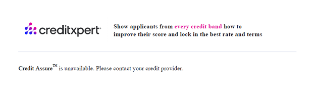 If neither agreement is signed, SharperLending Solutions cannot legally send your data to CreditXpert without your authorization. Starting October 1, your clients will see the below message on the Credit Assure page. Note that if you do not want this message to show, you can simply uncheck the Assure checkbox and not deliver the Credit Assure product to your clients. .