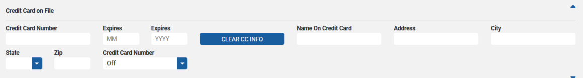 Store a company credit card to use for order placements, set as a backup payment option, or use for Daily/Monthly invoicing purposes.