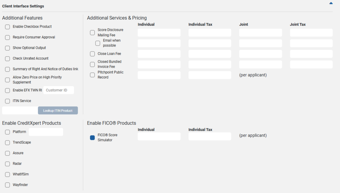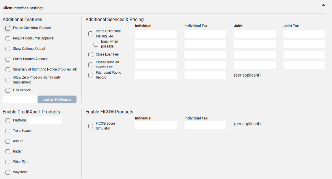 Additional features, products, and services can be enabled under the Client Interface Settings.