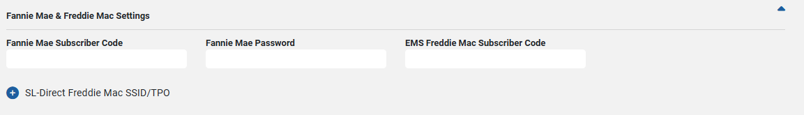 - SL-Direct Freddie Mac SSID/TPO - Enter client credentials for wholesale lenders to utilize the SharperLending Direct Freddie Mac connection for reissuing reports to Loan Product Advisor ® (LPA ®). Each wholesale lender authorization to use this connection must be entered individually. This connection is strongly recommended.