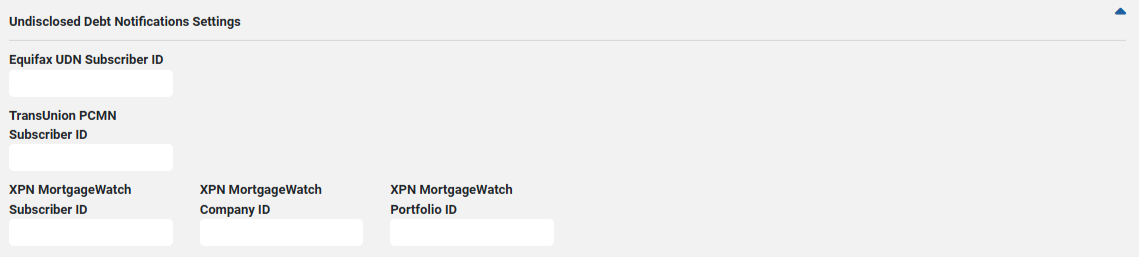 Notify the client when a UDN is triggered by entering the client's Subscriber IDs per bureau. Once established, the client will be notified when the activity occurs.