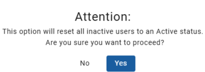 An overlay will appear asking if re-activation of user accounts should be committed. Select Yes to proceed with re-activating all inactive users, or No to return to the previous screen.