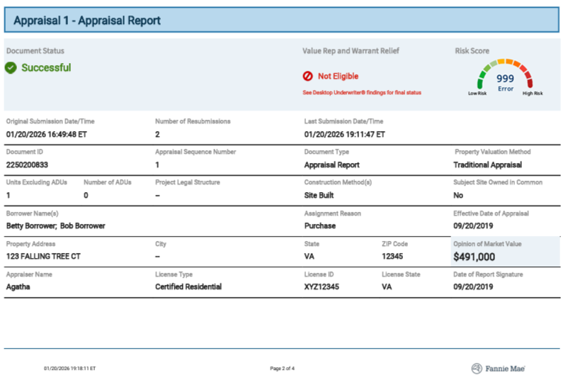 To view the results, access the output via the Communications Log or Documents tab. UCDP has redesigned the output(s) to align with the UAD 3.6 modernization application in a decipherable format. Below is an example of how the new outputs may appear. NOTE: UCDP will no longer permit overriding hard stops. Any Severity returned as a 'Fatal' finding from Fannie Mae® or Freddie Mac® must result in an updated appraisal submission.